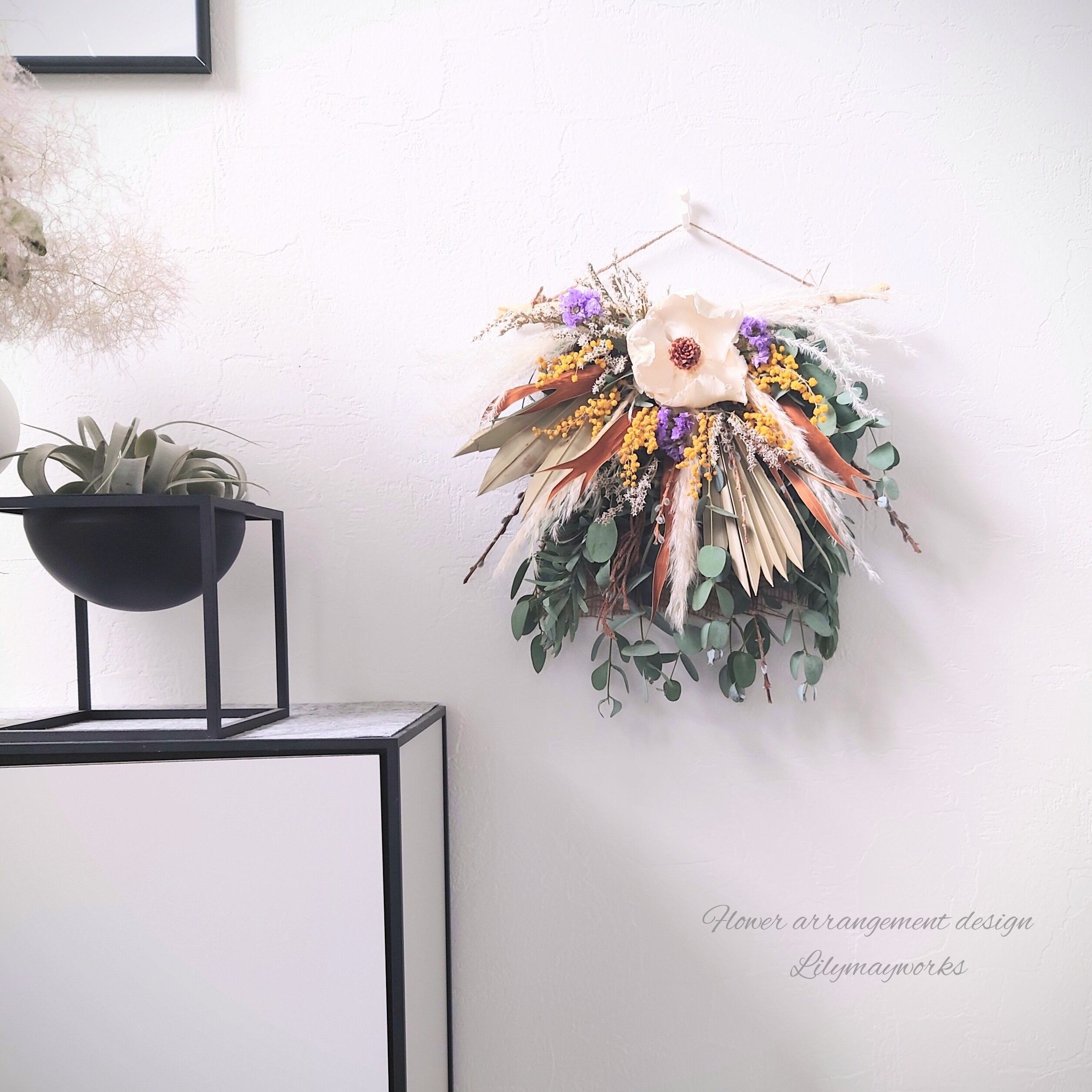#ボタニカルタペストリー#ドライフラワータペストリー#タペストリー#パームフラワー#パームサンリーフ#ドライフラワーアレンジメント#パンパスグラス#ユーカリ#ミモザ#スターチス#ススキ#壁掛け#ハンドメイドフラワー#ウェルカムボード#ウェルカムスペース#両親贈呈品#両親記念品#フォトウェディング#前撮り#バースディフォト#マタニティフォト#誕生日プレゼント#新築祝い#結婚祝い